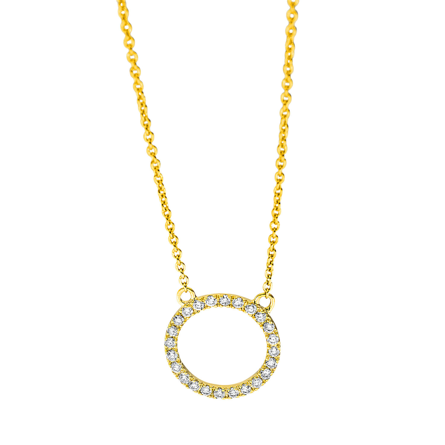 Collier Kreis aus 750 Gold Gelbgold 24 Brillanten 0,11ct TW-SI L:45cm