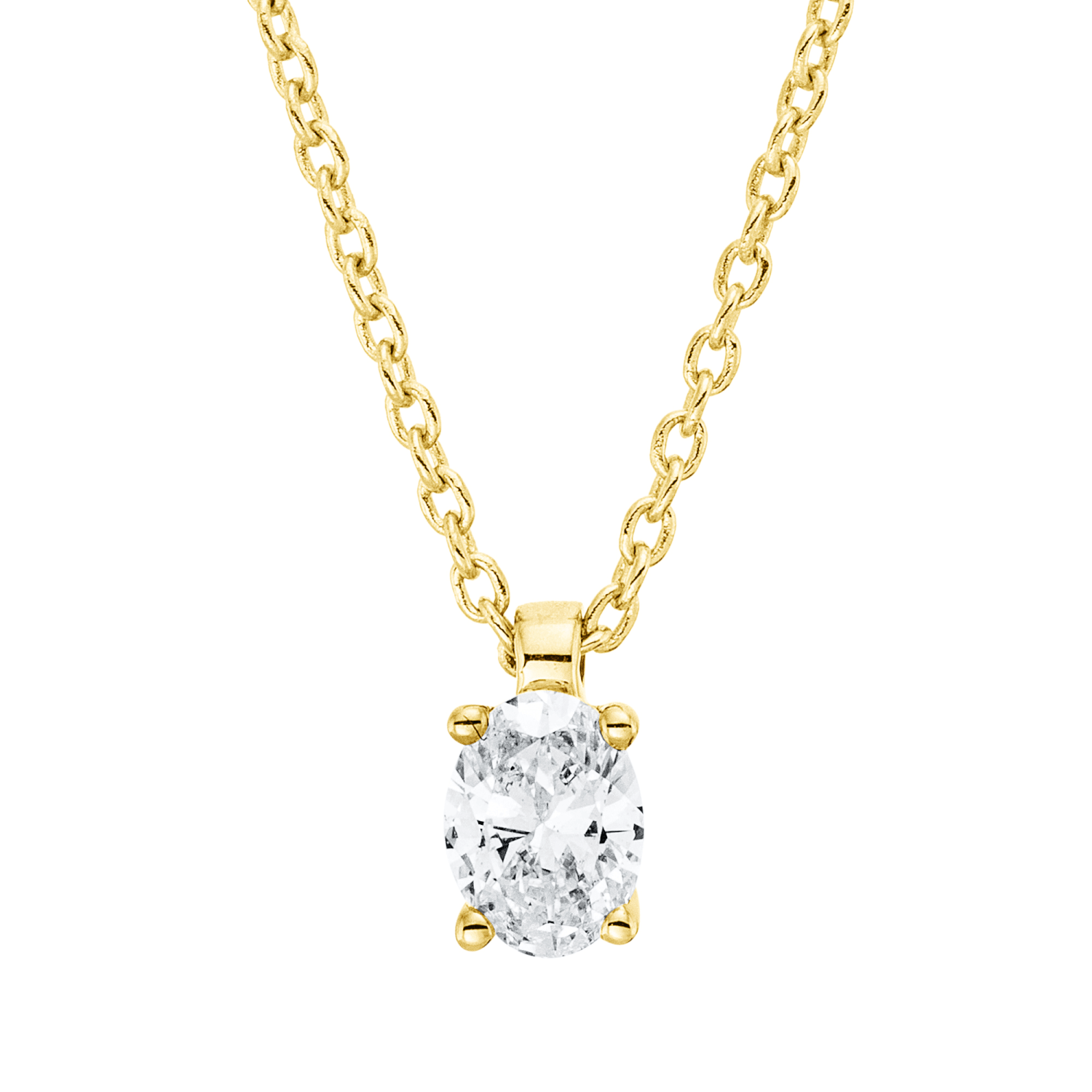 Solitaire Collier aus 750 Gelbgold Diamant Oval-Schliff 0,19ct TW-SI L:45cm
