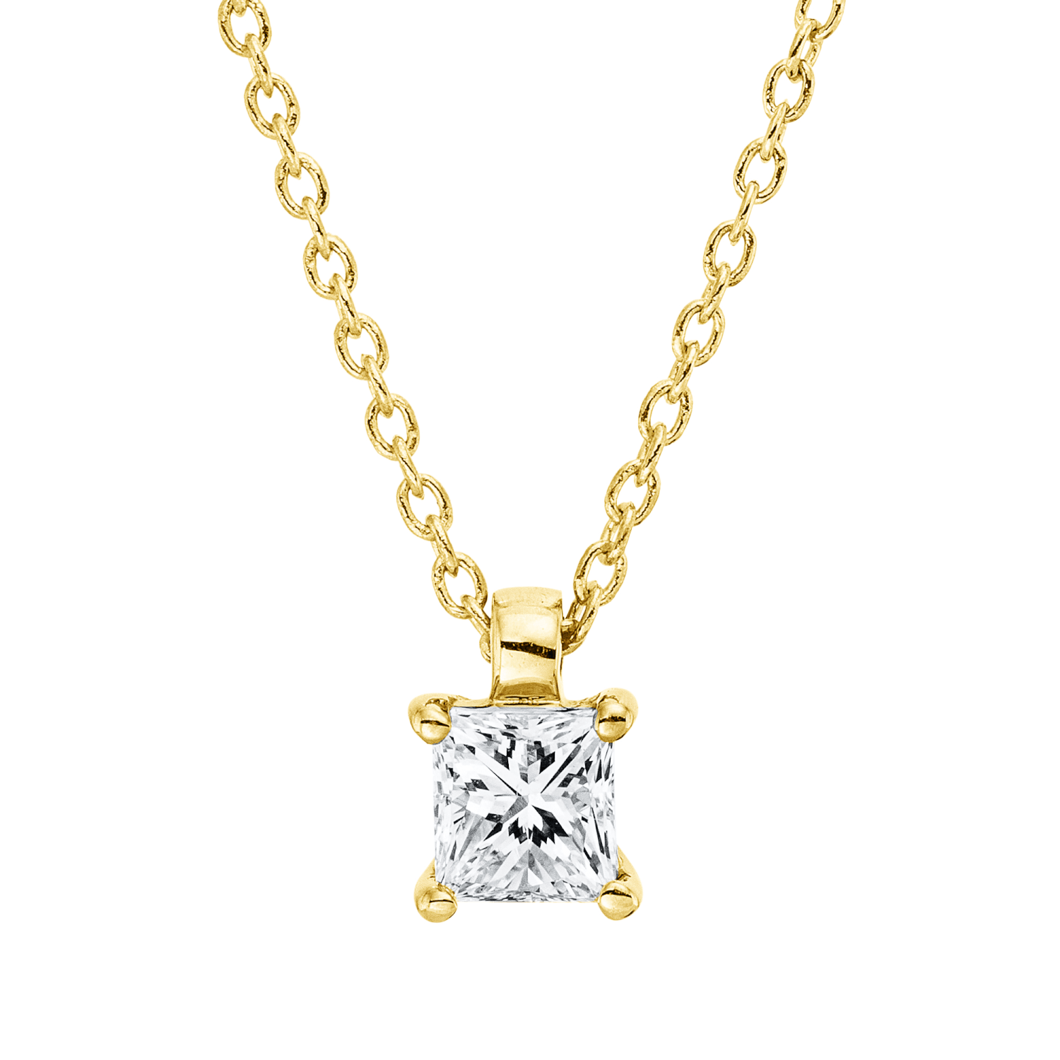 Solitaire Collier aus 750 Gelbgold Diamant Prinzess-Schliff 0,26ct TW-SI L:45cm