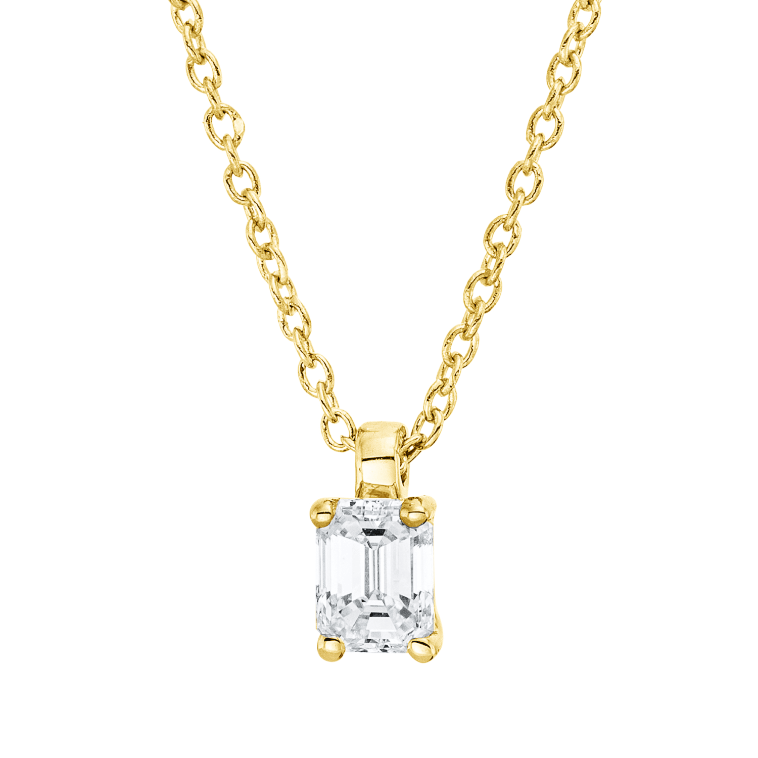 Solitaire Collier aus 750 Gelbgold Diamant Smaragd-Schliff 0,27ct TW-SI L:45cm