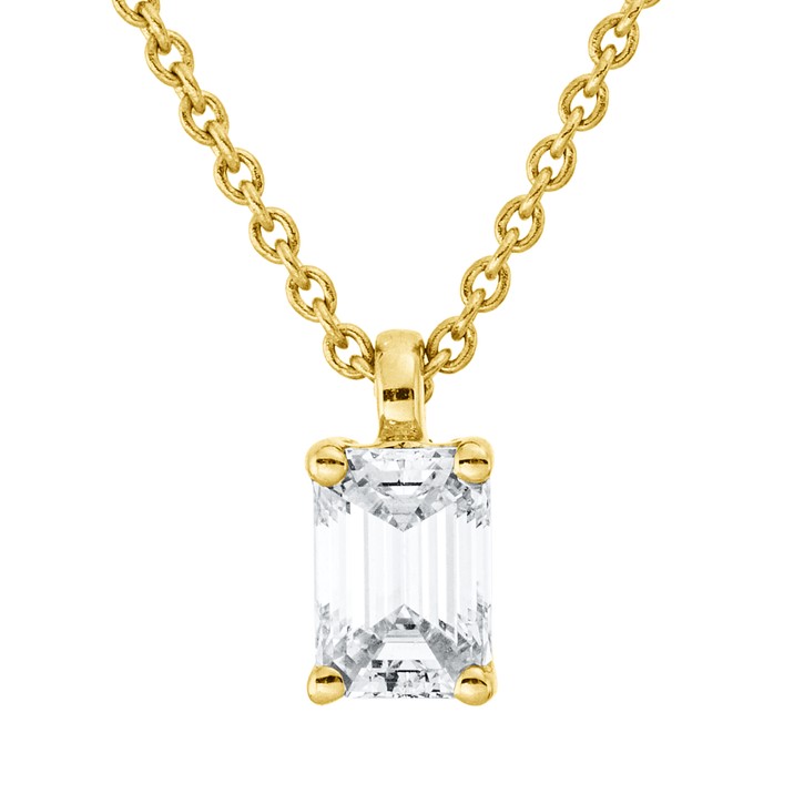 Solitaire Collier aus 750 Gelbgold Diamant Smaragd-Schliff 0,31ct E-VSI L:45cm