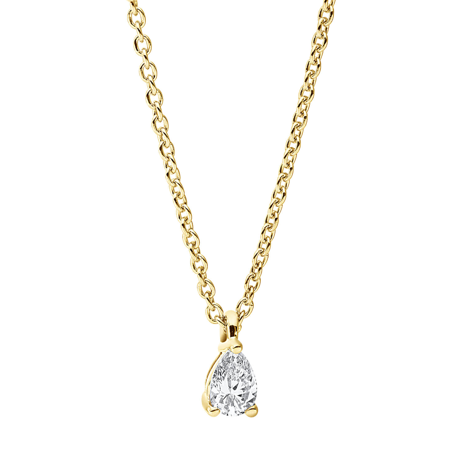 Solitaire Collier aus 750 Gelbgold Diamant Tropfen-Schliff 0,1ct TW-SI L:45cm
