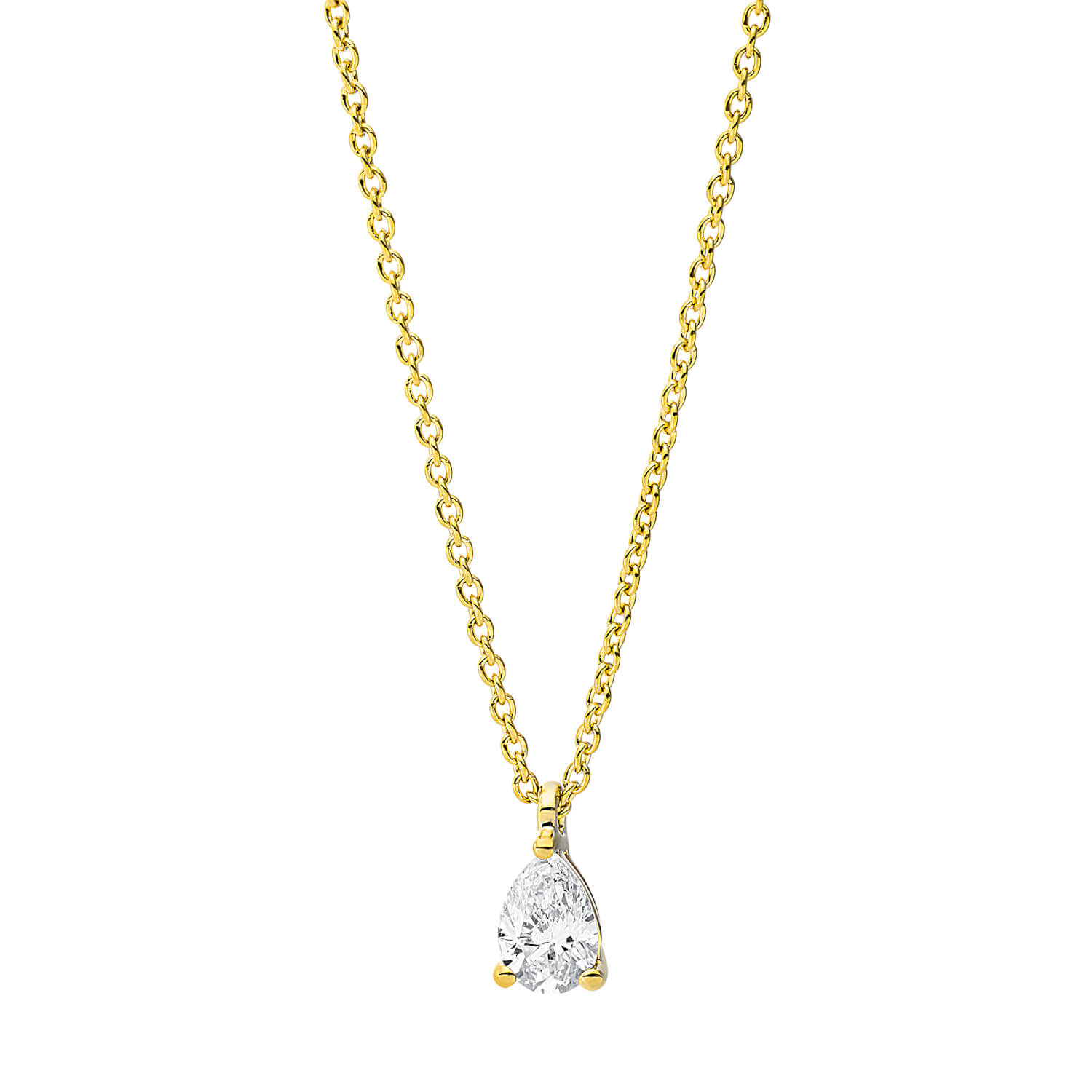 Solitaire Collier aus 750 Gelbgold Diamant Tropfen-Schliff 0,2ct TW-SI L:45cm