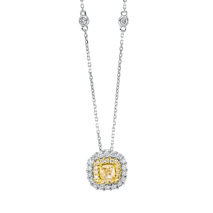 Solitaire Collier aus 750 Gold gelb/weiß 37 Diamanten 1,22ct L:45,7cm 4er-Krappe