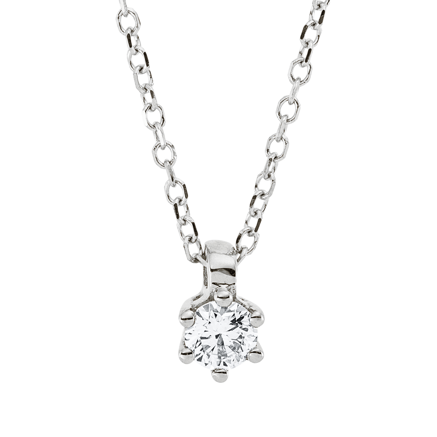 Solitaire Collier aus 750 Gold Weißgold Brillant 0,14ct TW-SI L:45cm 6er-Krappe