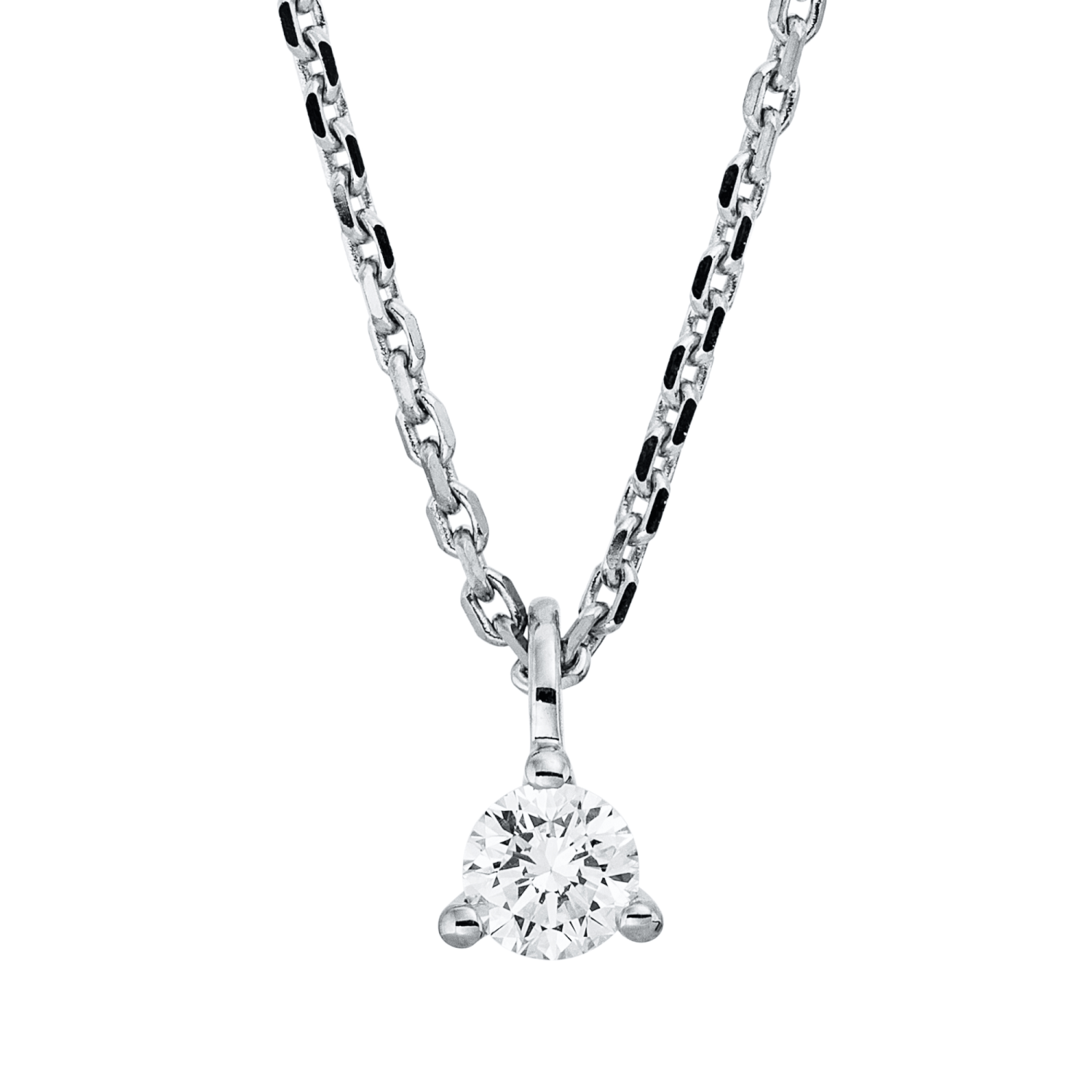 Solitaire Collier aus 750 Gold Weißgold Brillant 0,15ct TW-SI L:45cm 3er-Krappe