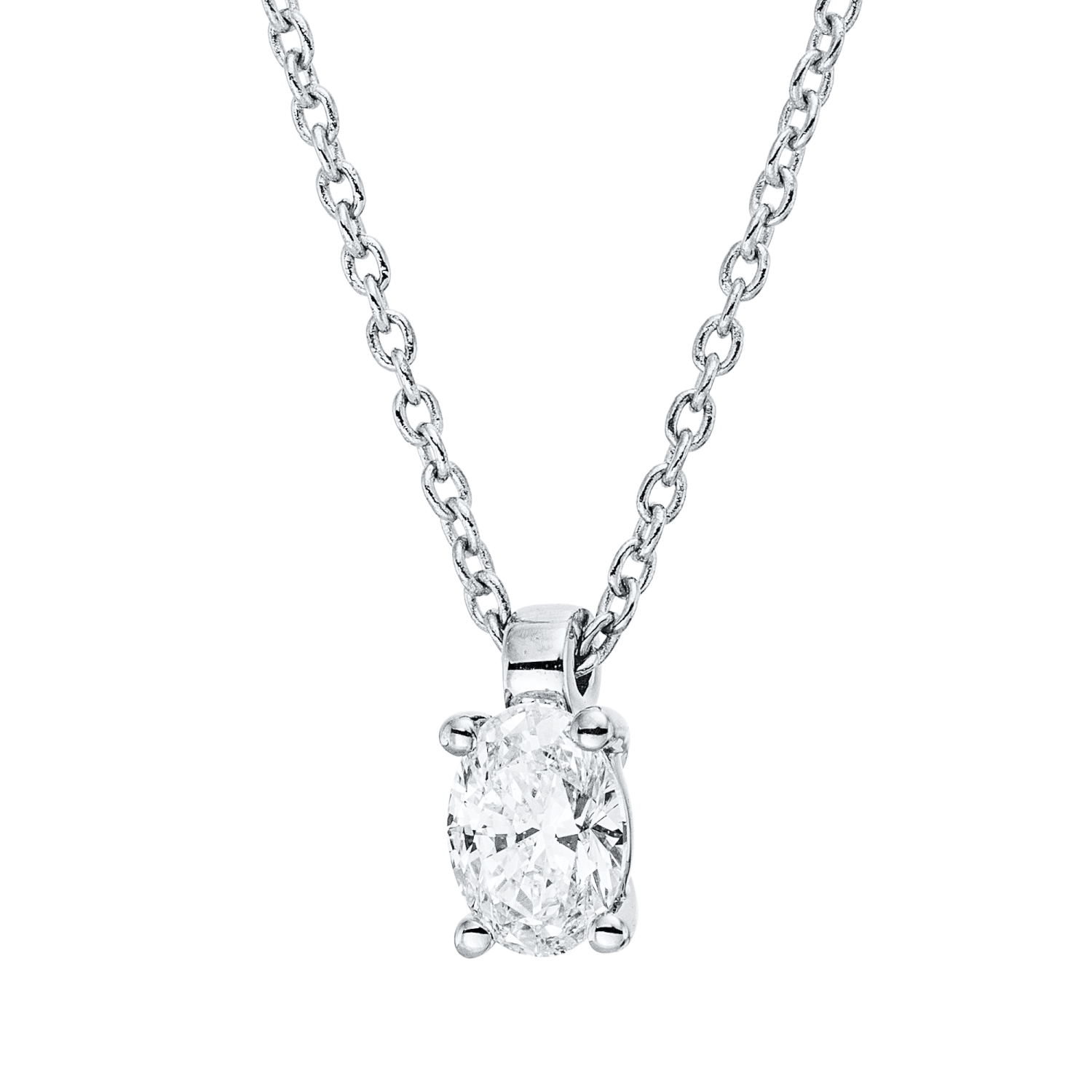 Solitaire Collier aus 750 Weißgold Diamant Oval-Schliff 0,25ct TW-SI L:45cm