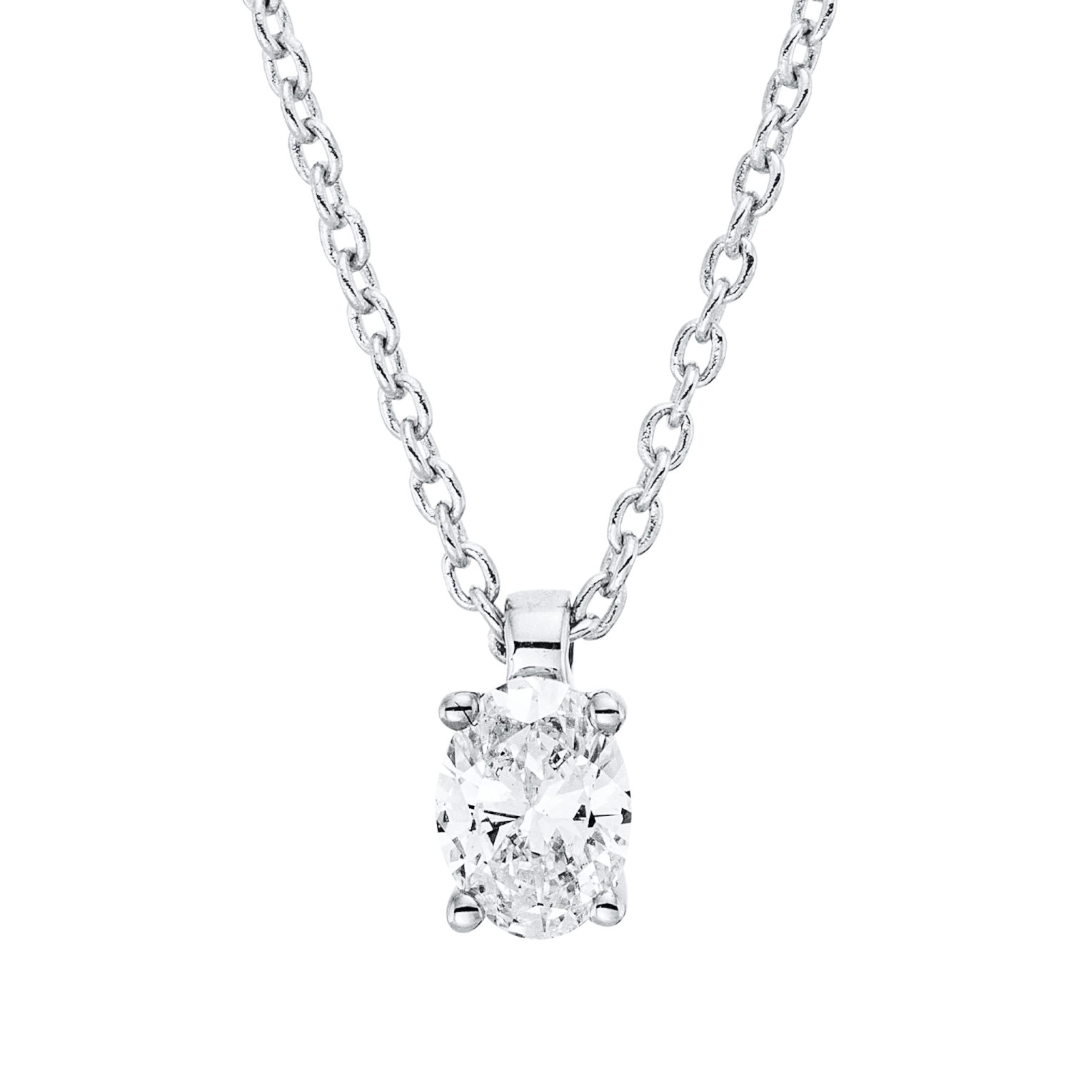 Solitaire Collier aus 750 Weißgold Diamant Oval-Schliff 0,2ct TW-SI L:45cm