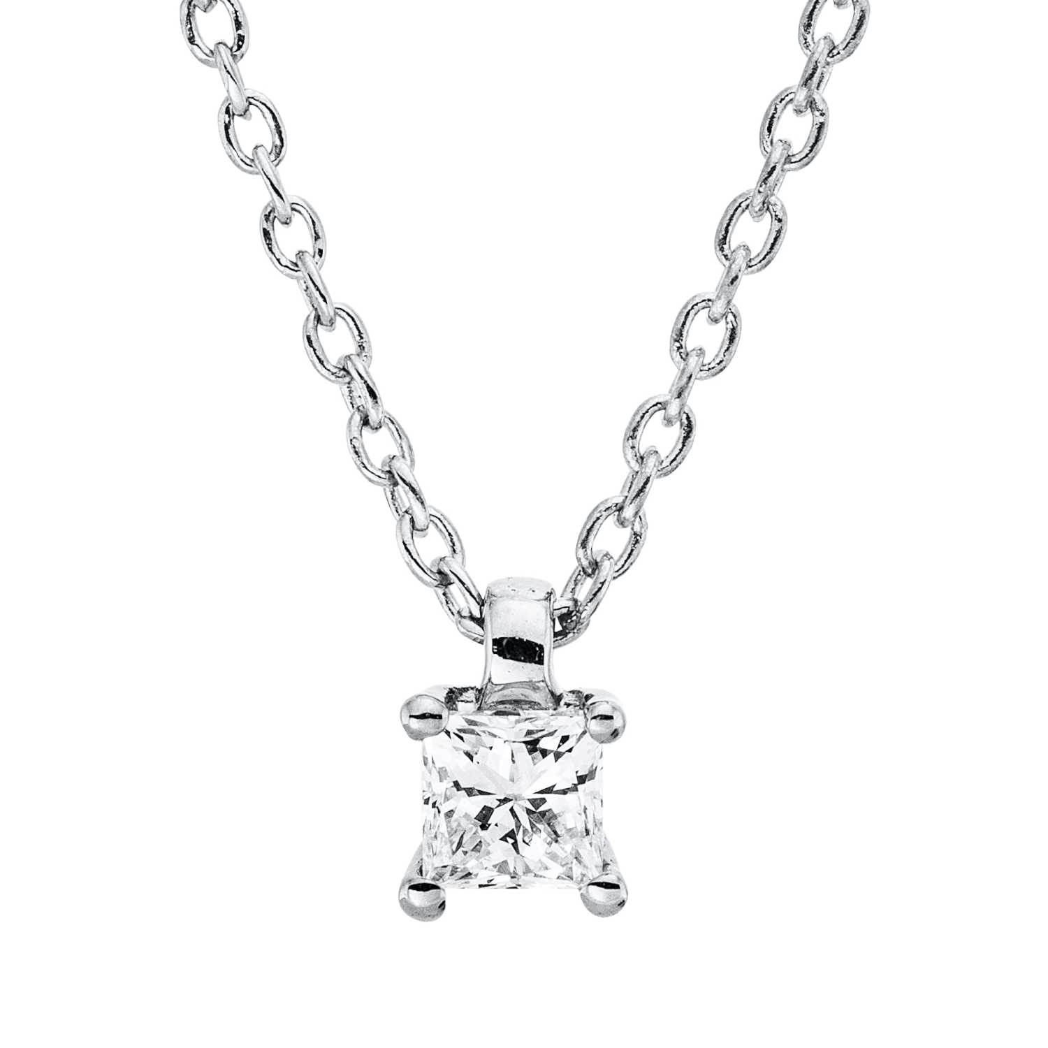 Solitaire Collier aus 750 Weißgold Diamant Prinzess-Schliff 0,1ct TW-SI L:45cm