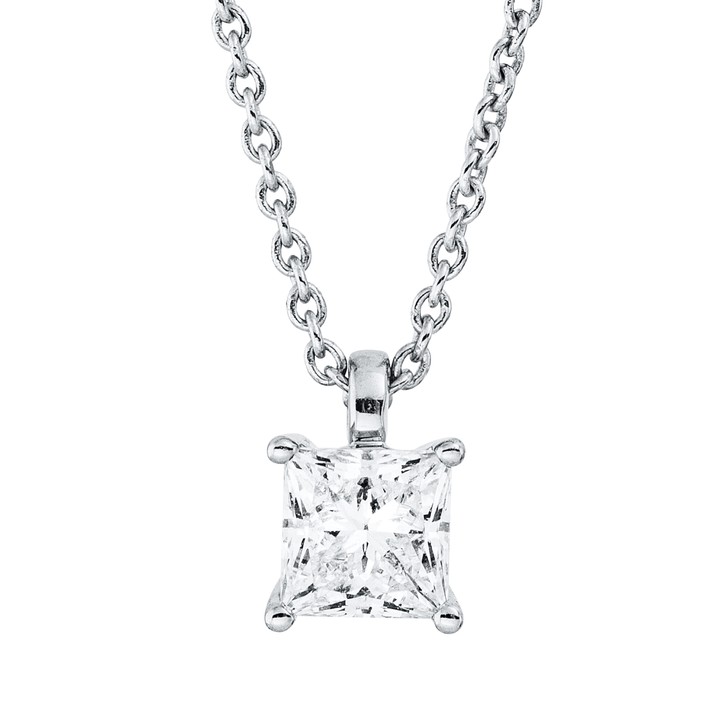 Solitaire Collier aus 750 Weißgold Diamant Prinzess-Schliff 0,33ct D-VSI L:45cm