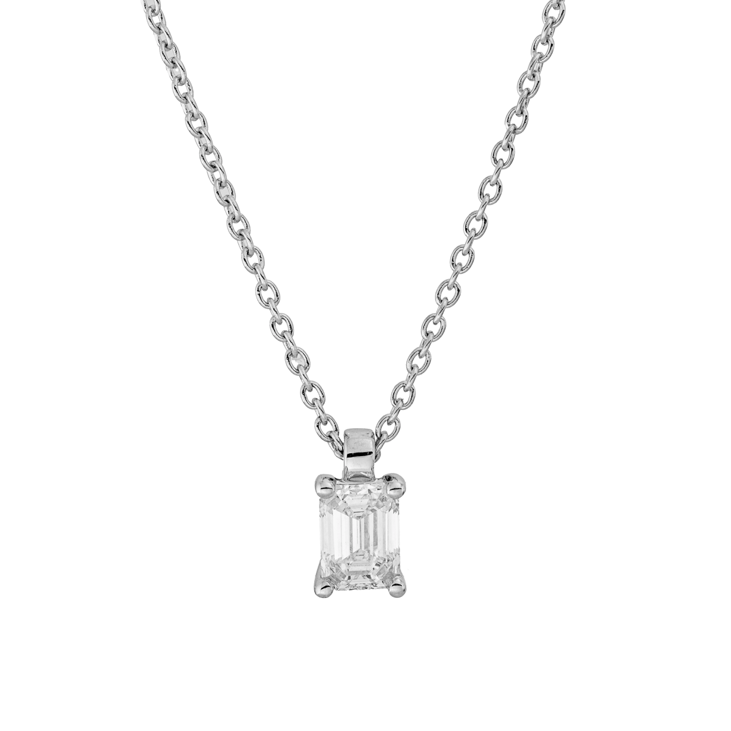 Solitaire Collier aus 750 Weißgold Diamant Smaragd-Schliff 0,3ct TW-VSI L:45cm