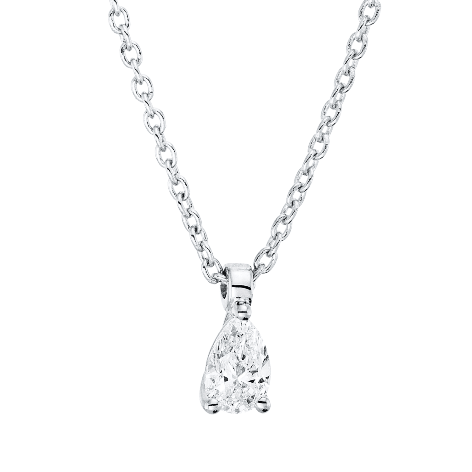 Solitaire Collier aus 750 Weißgold Diamant Tropfen-Schliff 0,14ct TW-SI L:45cm