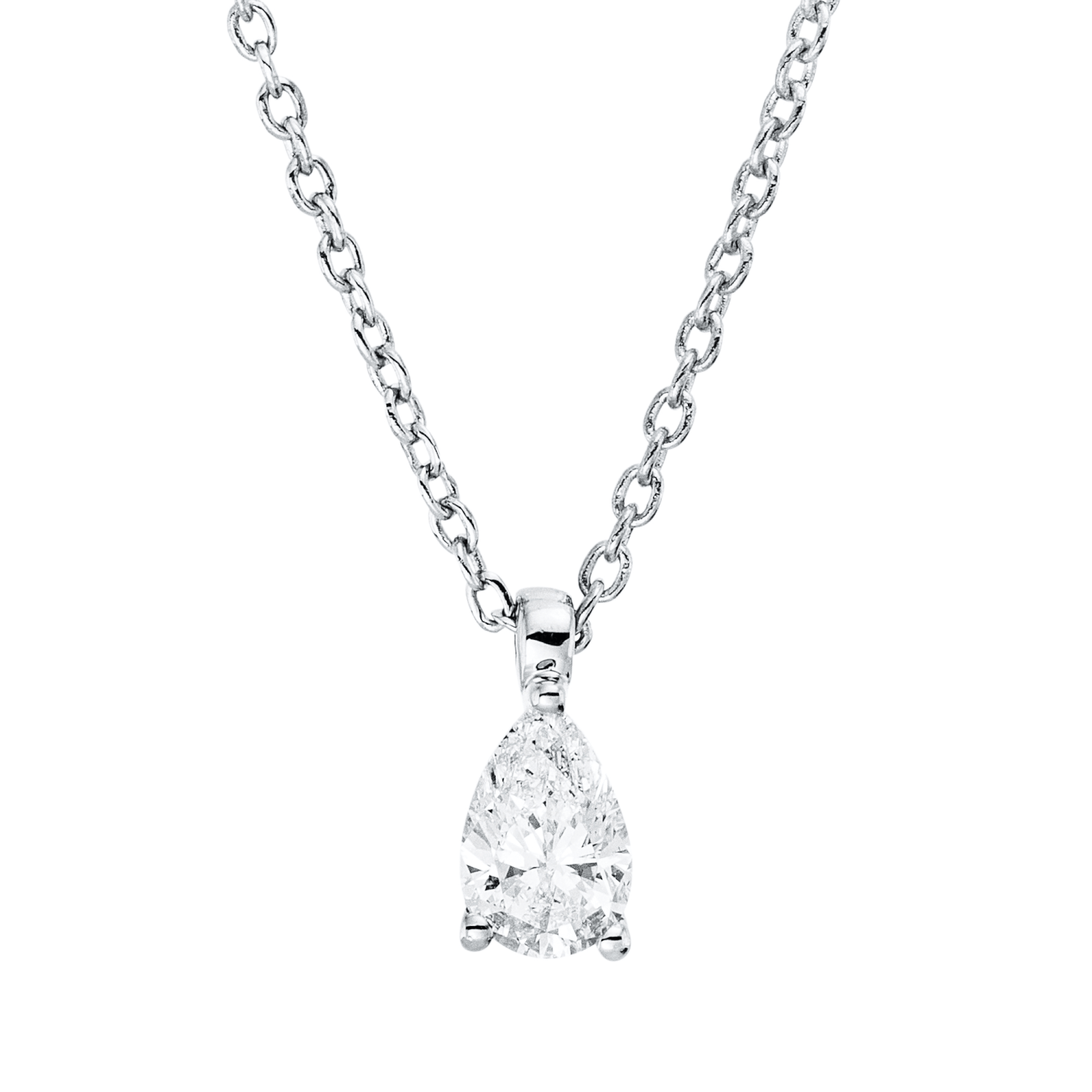 Solitaire Collier aus 750 Weißgold Diamant Tropfen-Schliff 0,2ct TW-SI L:45cm