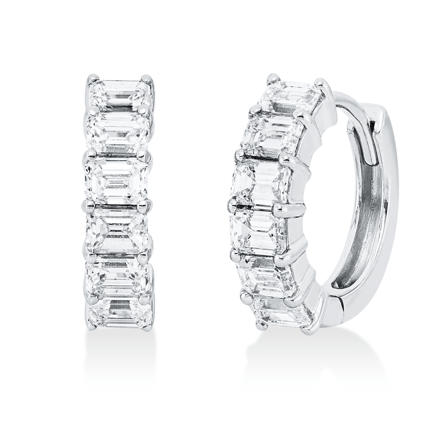 Creolen aus 750 Weißgold 12 Diamanten Smaragd-Schliff 1,26ct F-SI 13,3x3,5mm