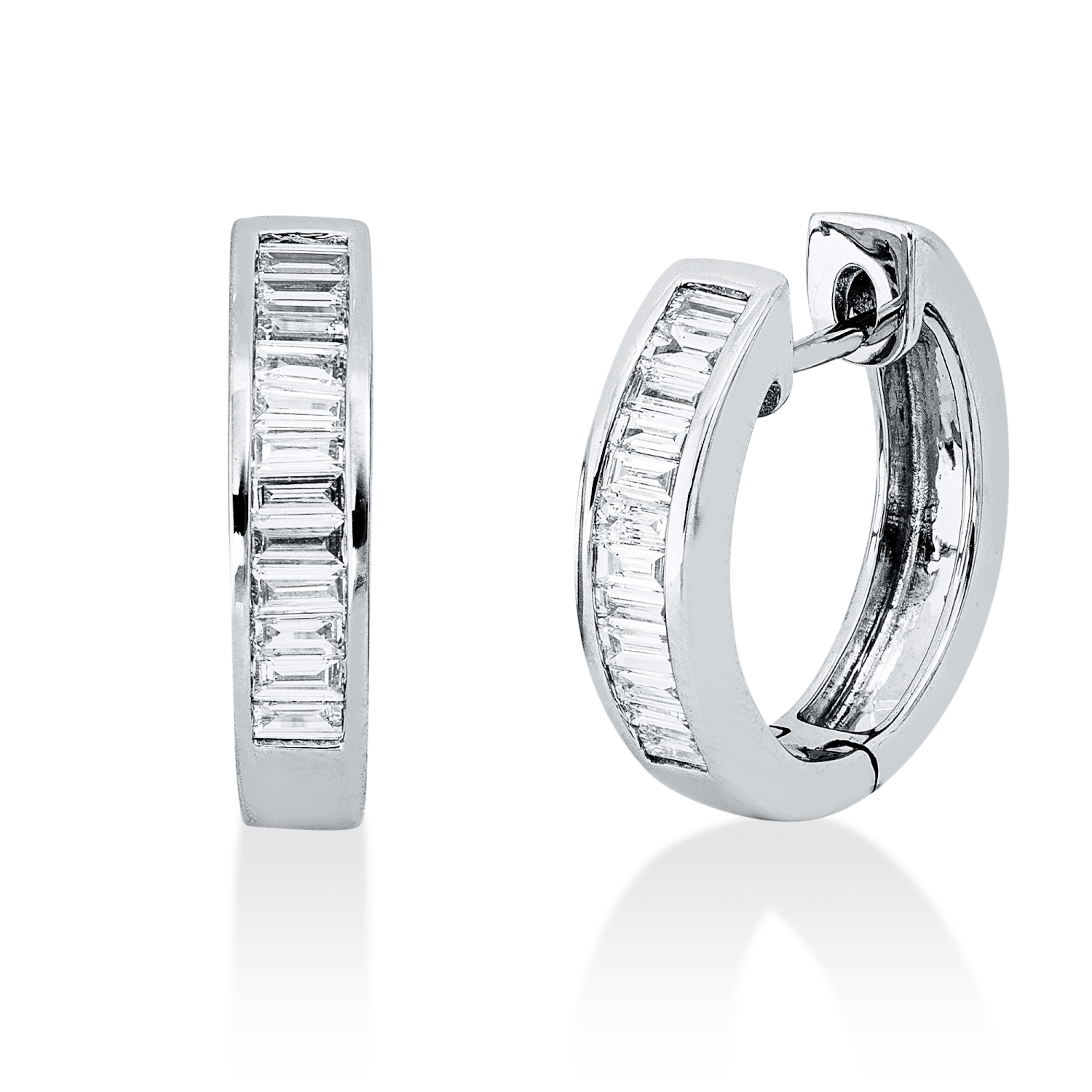 Creolen aus 750 Weißgold 24 Diamanten Baguette-Schliff 0,45ct TW-SI 15,4x3,2mm