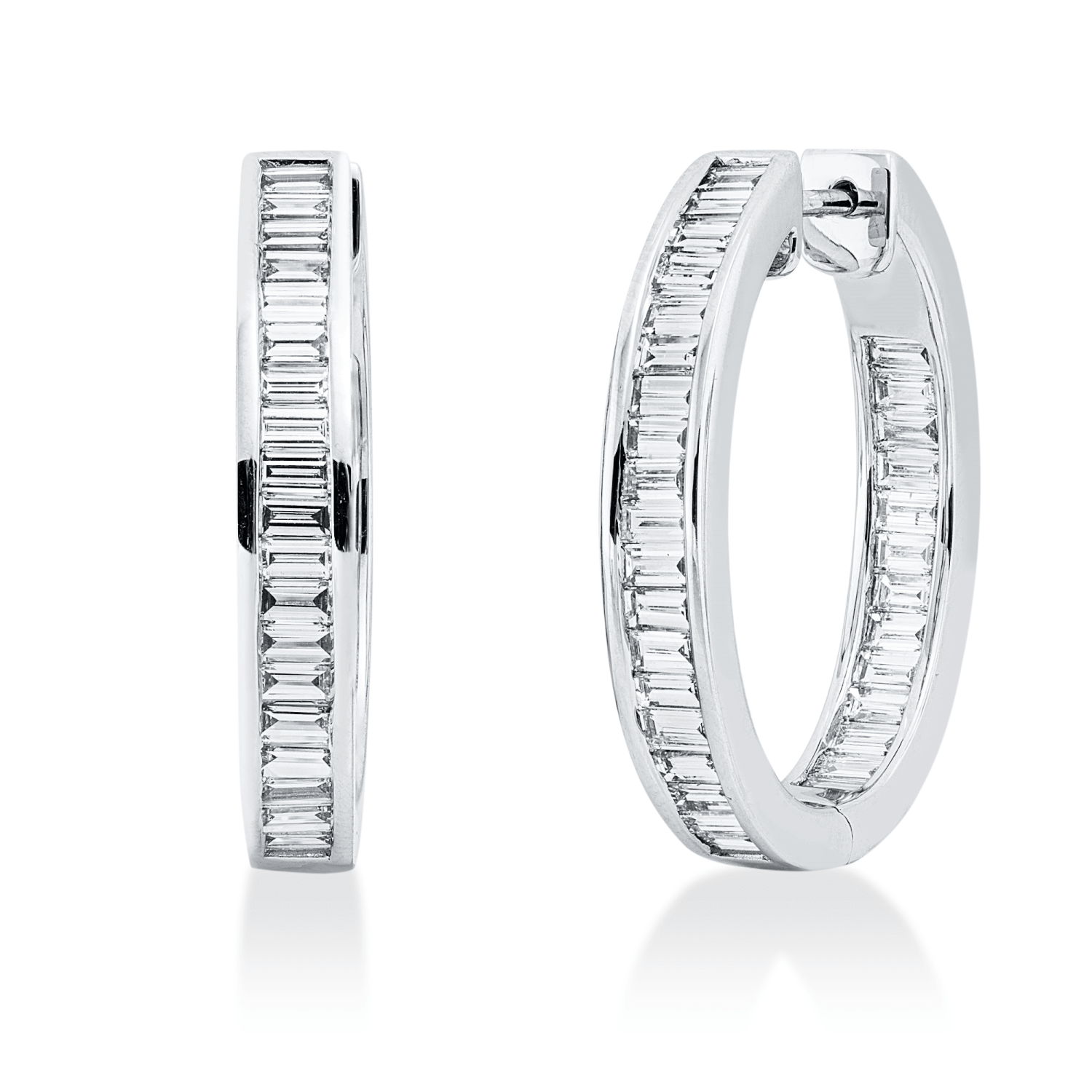 Creolen aus 750 Weißgold 64 Diamanten Baguette-Schliff 3,07ct TW-SI 27x4,4mm