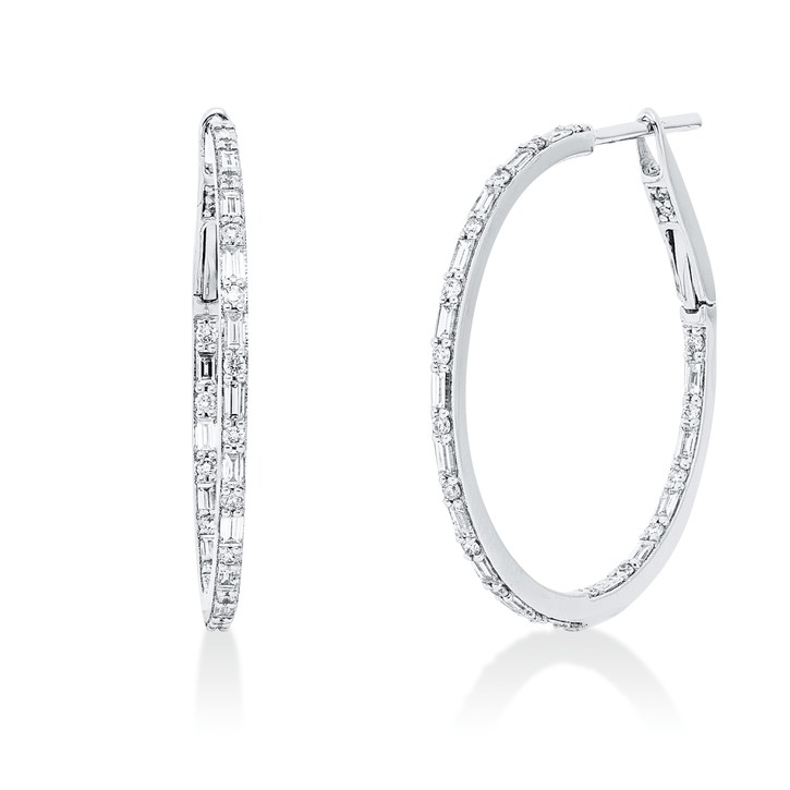 Creolen schmal aus 750 Weißgold 72 Diamanten Fanatsy-Schliff 0,68ct TW-VSI/SI