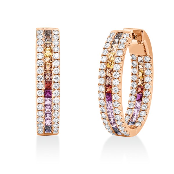 Creolen 750 Rotgold 50 Rubine 2,06ct rot 112 Brillanten 1,51ct TW-VSI/SI 24,5x5,1mm