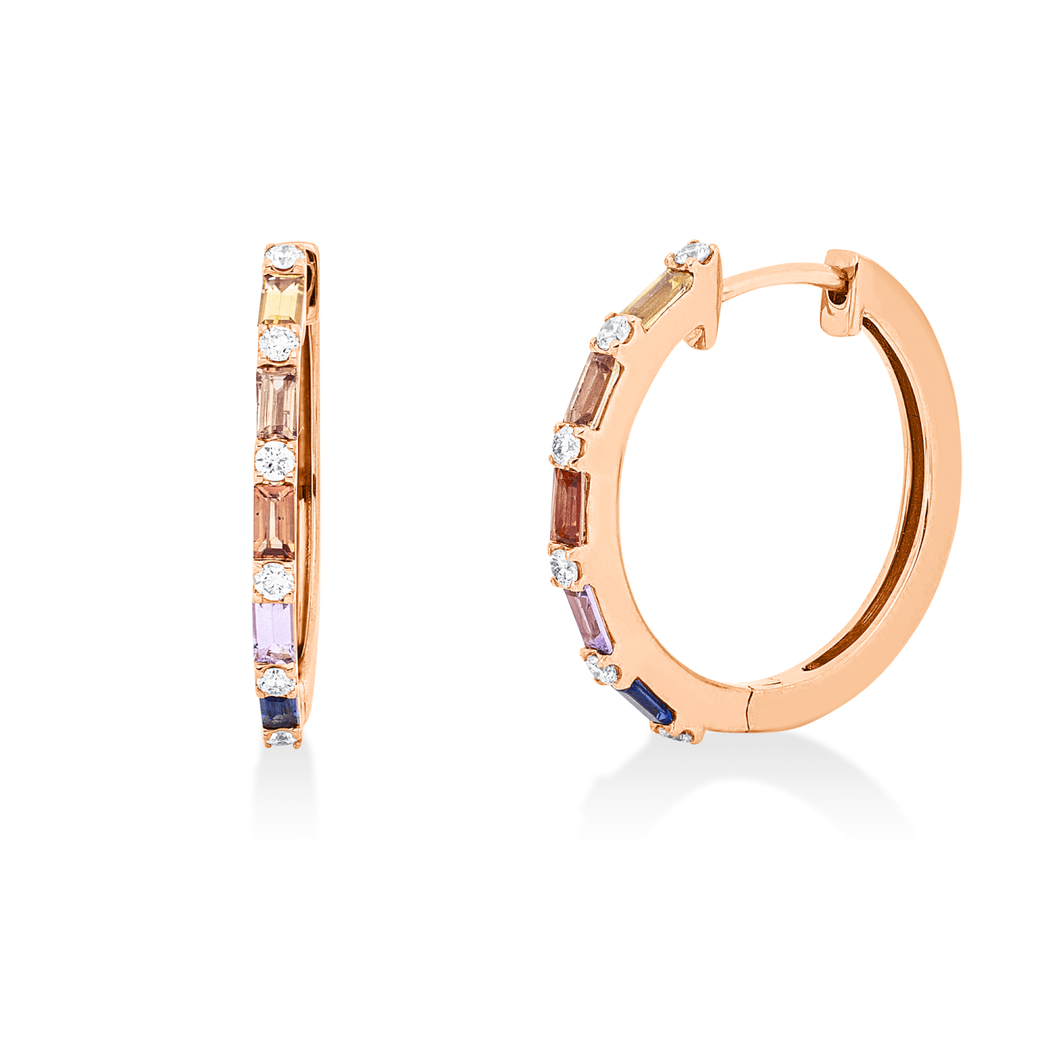 Creolen aus 750 Rotgold 10 Saphire 0,58ct mehrfarbig 12 Brillanten 0,17ct TW-SI