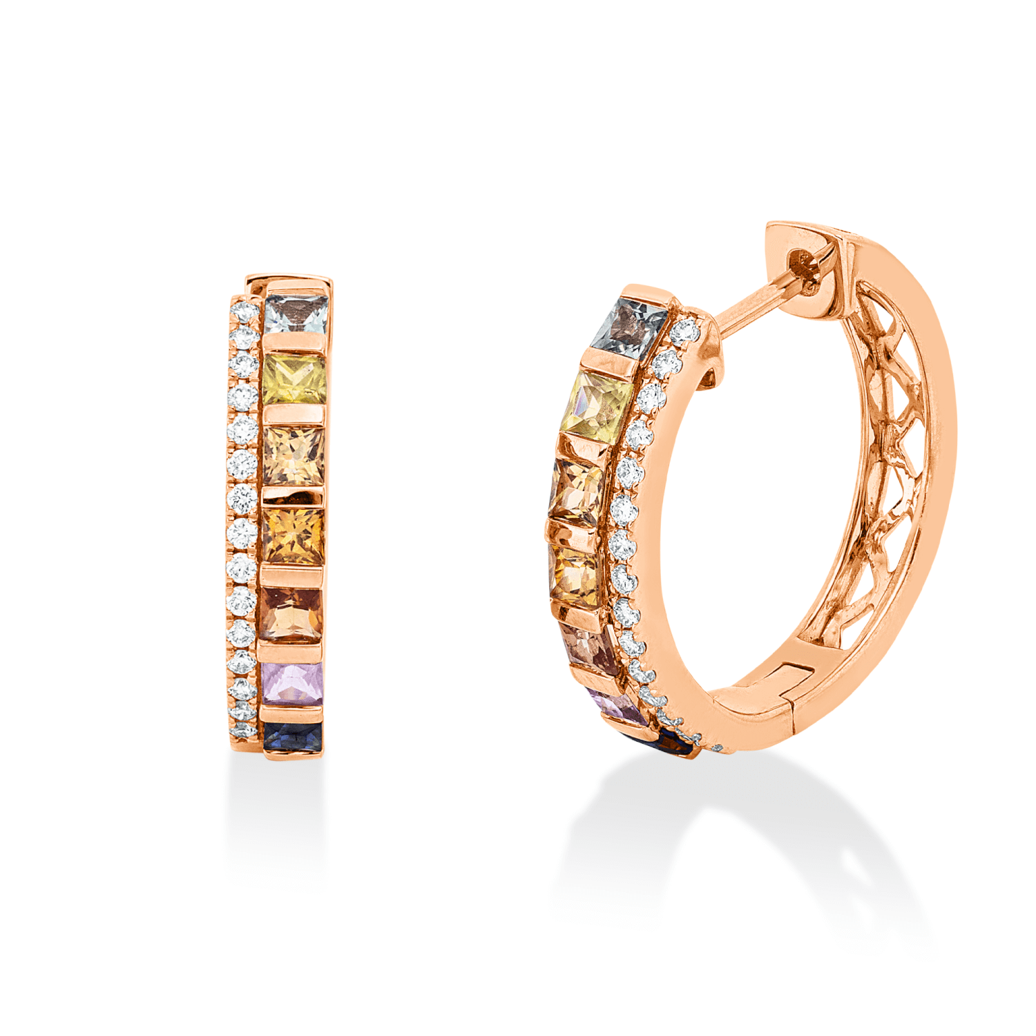 Creolen aus 750 Rotgold 14 Saphire 1,26ct mehrfarbig 30 Brillanten 0,17ct TW-SI