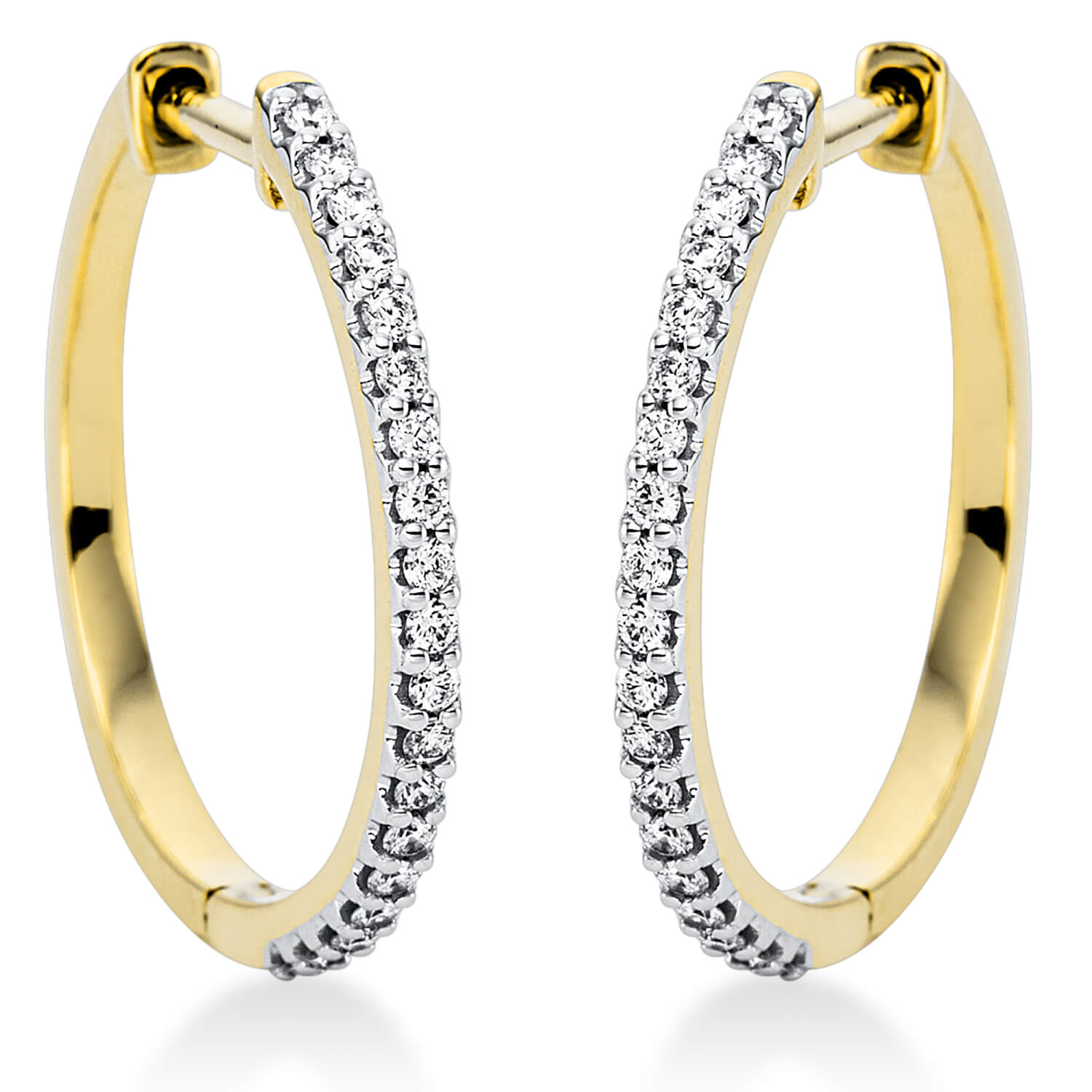 Creolen aus 750 Gelbgold 38 Brillanten 0,26ct TW-SI 21,1x1,6mm Fassung rhodiniert