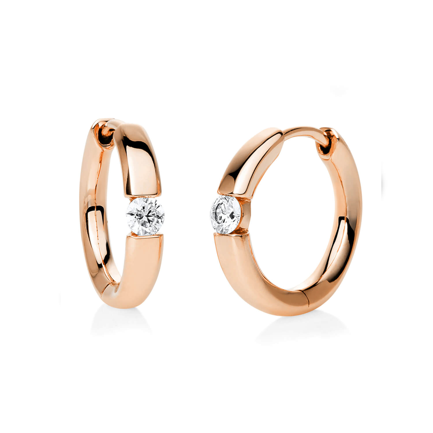 Solitaire Creolen aus 585 Gold Rotgold 2 Brillanten 0,16ct TW-SI 13,8x2,4mm
