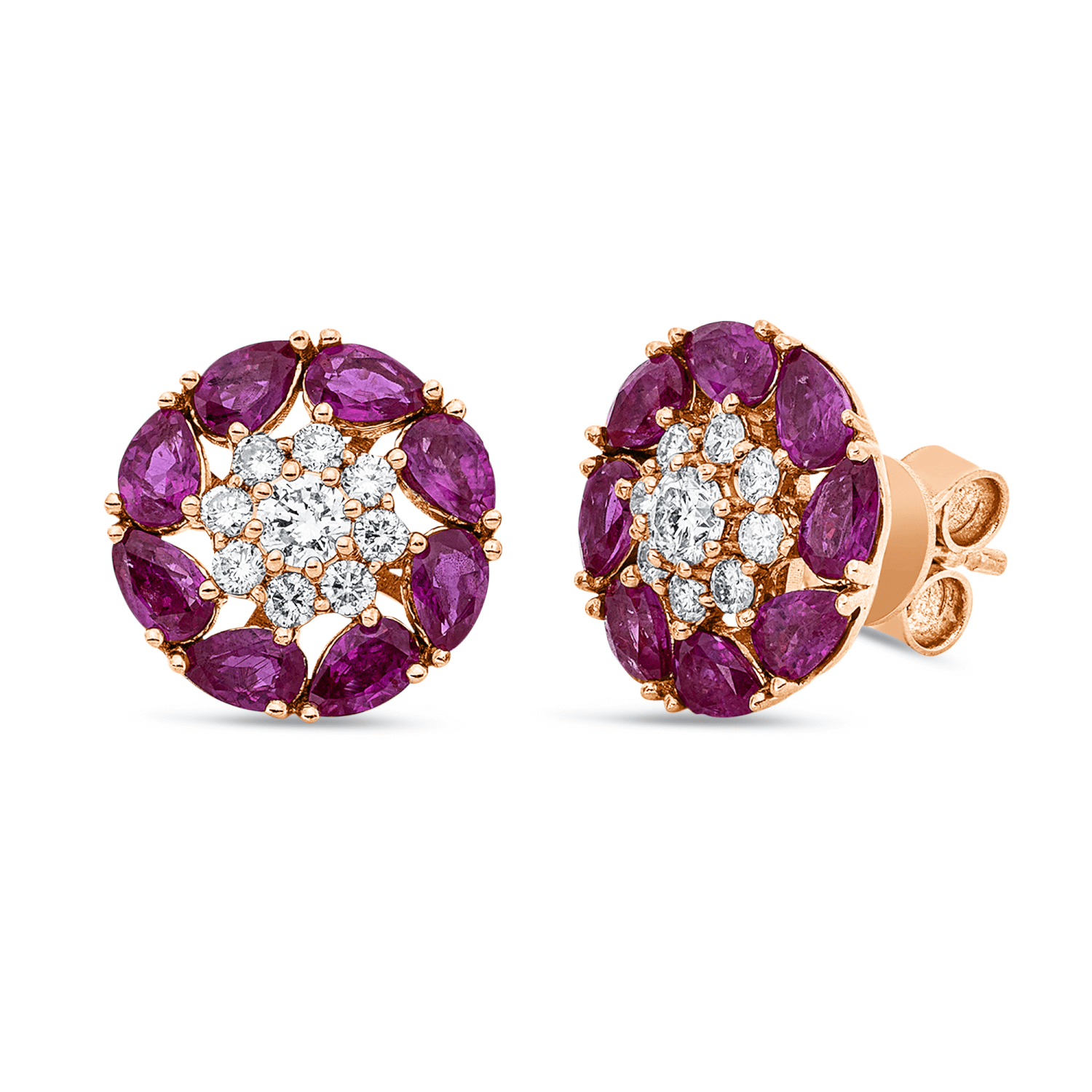 Ohrstecker 750 Rotgold 16 Rubine 2,4ct rot 18 Diamanten 0,59ct TW-SI 12,4x12,2mm