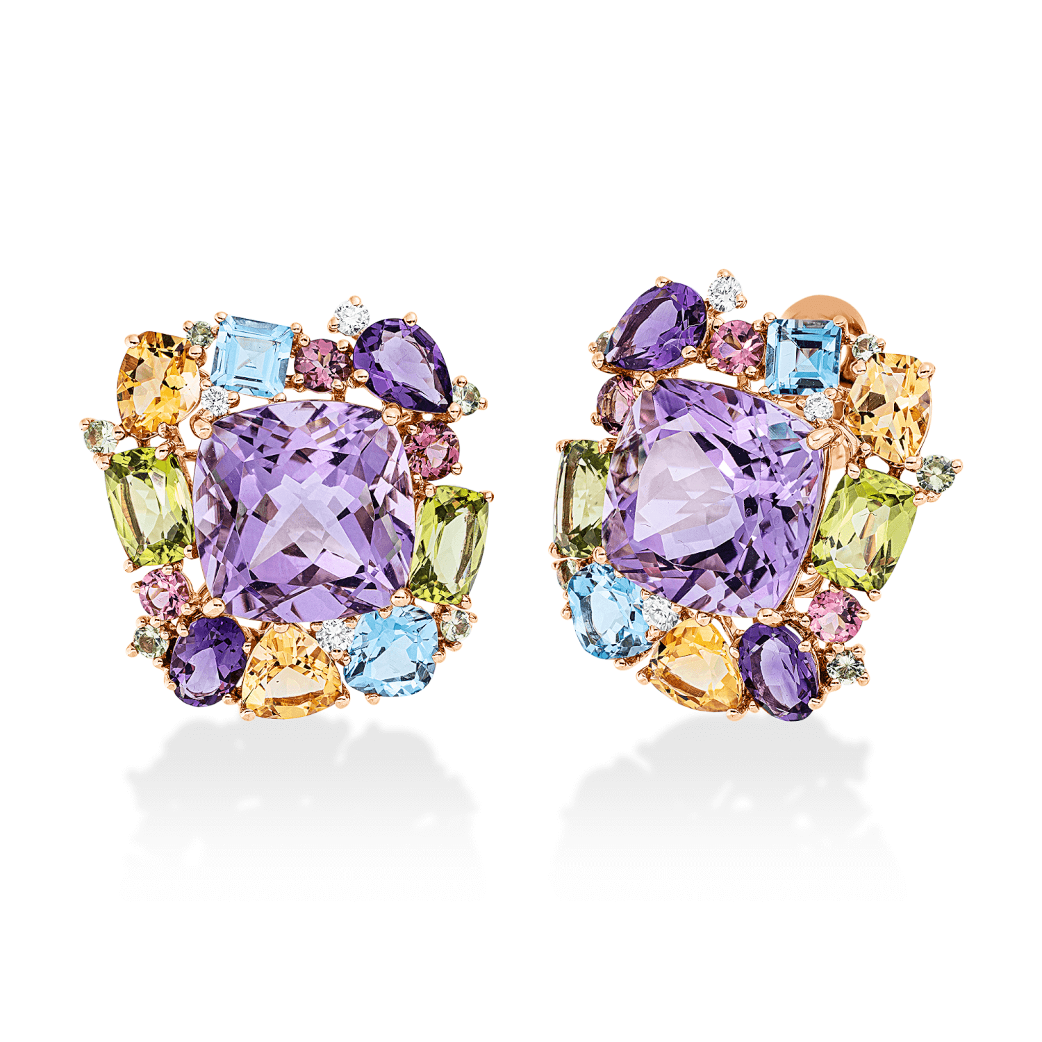 Ohrstecker 750 Rotgold 34 Farbsteine 26,46ct mehrfarbig 6 Brillanten 0,2ct TW-SI