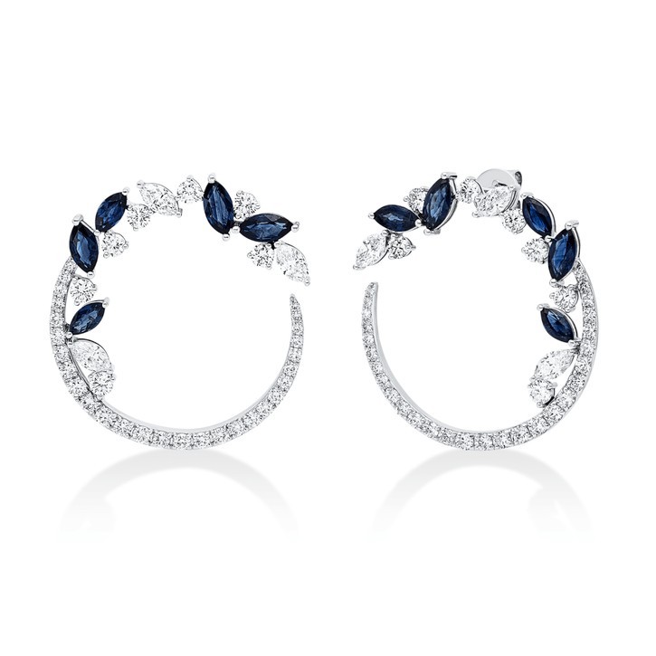Ohrstecker aus 750 Weißgold 10 Saphire 76 Brillanten 2,82ct