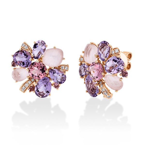 Ohrstecker aus 750 Rotgold 20 Turmaline 18 Brillanten 0,11ct