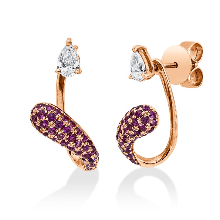 Ohrstecker aus 750 Rotgold 90 Rubine 0,67ct rot mit Diamanten 16,7x8,3mm