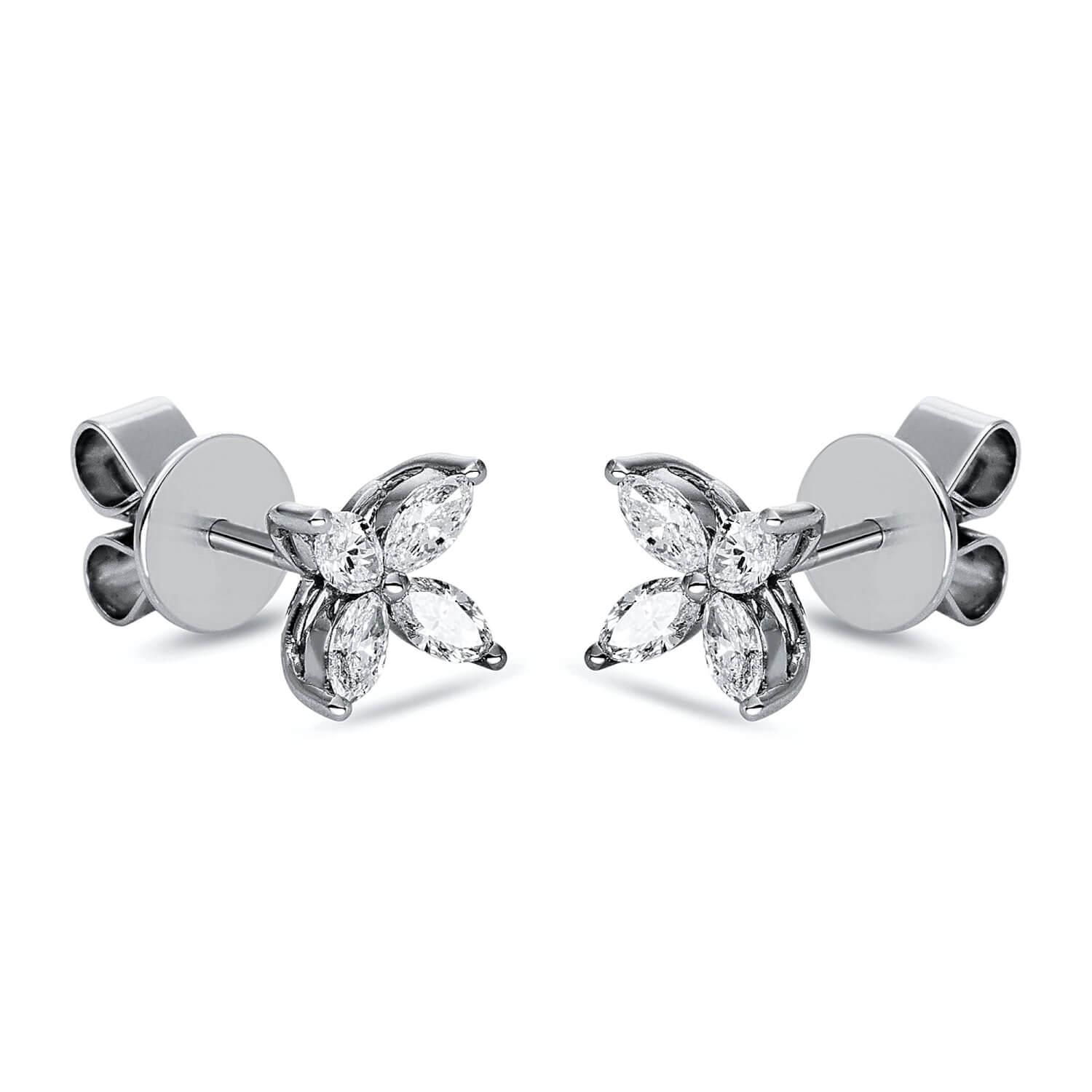 Ohrstecker aus 750 Weißgold 8 Diamanten Navette-Schliff 0,49ct TW-VSI 6,3x6,3mm