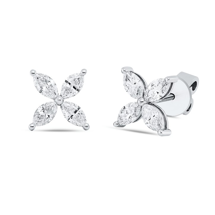 Ohrstecker aus 750 Weißgold 8 Diamanten Navette-Schliff 0,72ct F-SI 8x8,3mm