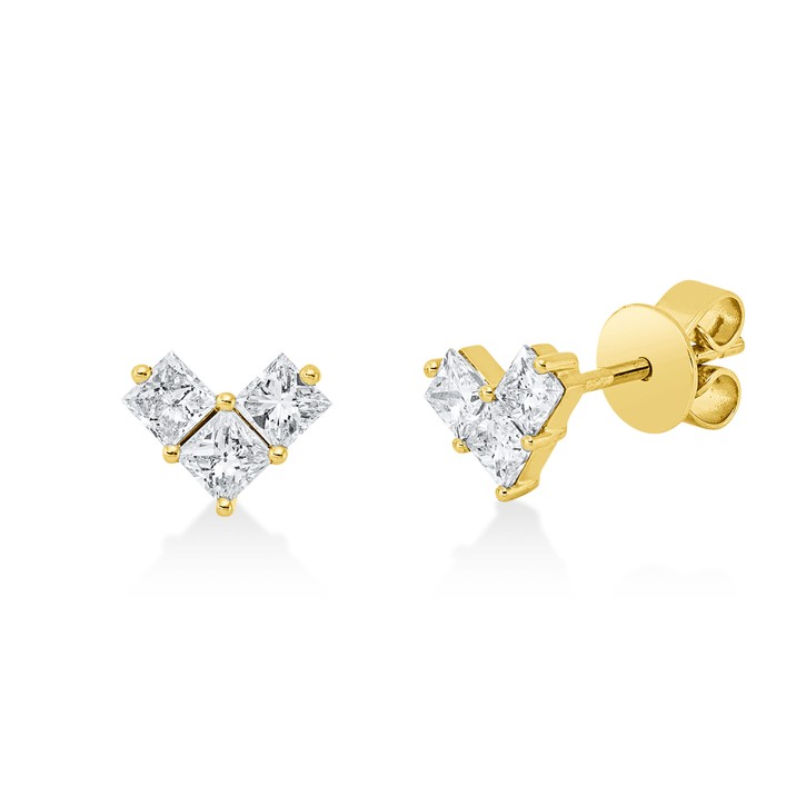 Ohrstecker aus 750 Gelbgold 6 Diamanten Prinzess-Schliff 0,64ct TW-SI 5,5x6,9mm