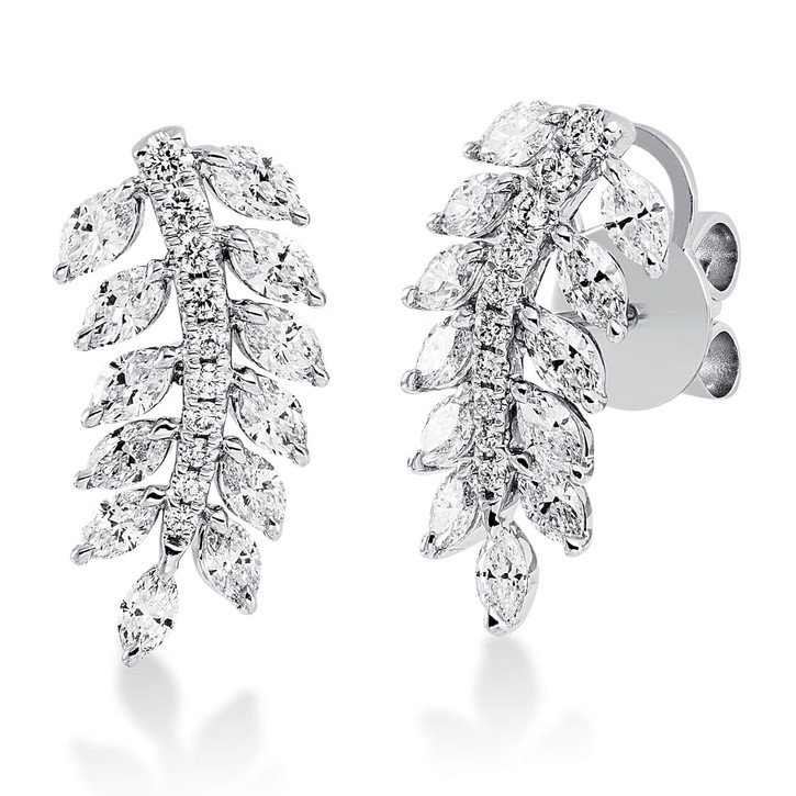 Ohrstecker Blumen Stiel aus 750 Weißgold 44 Diamanten 1,48ct TW-SI 17,7x8,8mm
