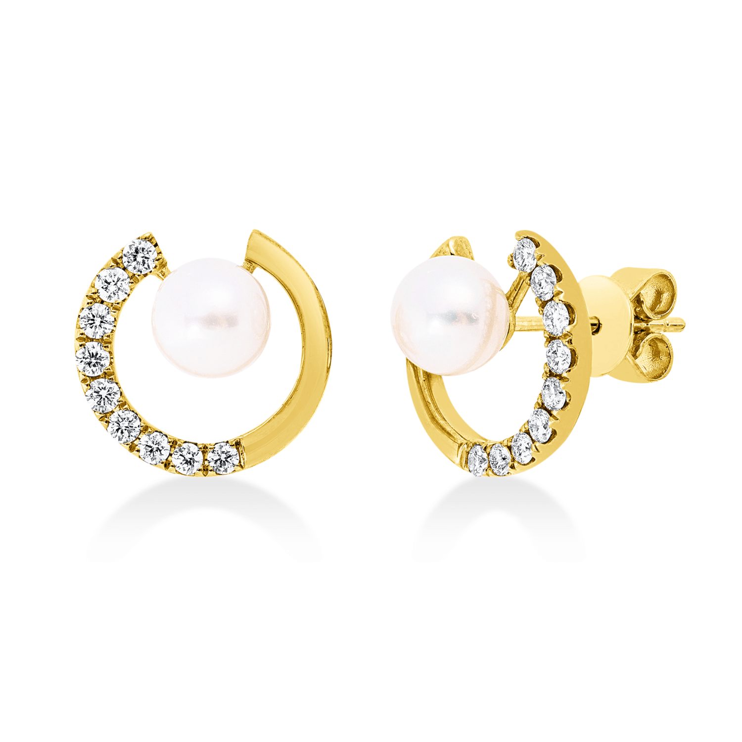 Ohrstecker 750 Gelbgold 2 Süßwasser-Perlen 5,5mm weiß 18 Brillanten 0,29ct TW-PI