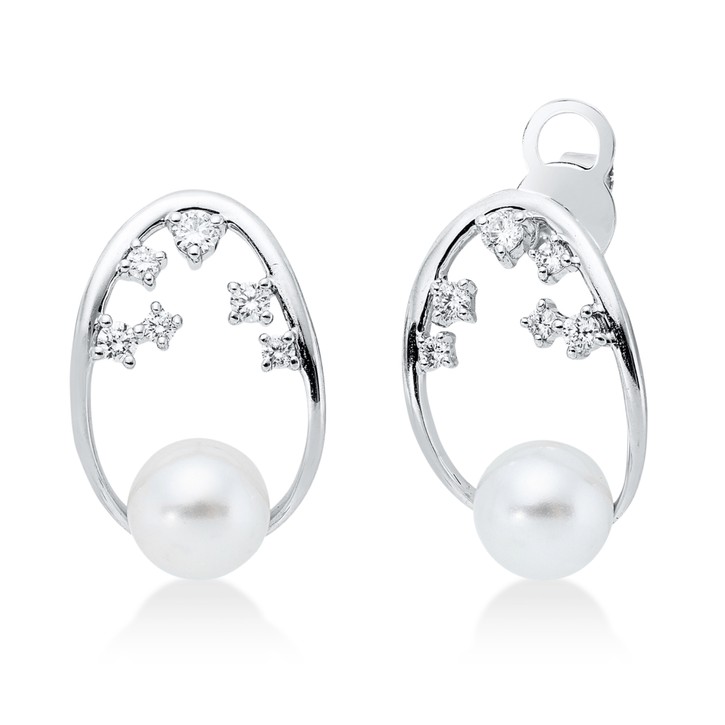 Ohrstecker 750 Weißgold 2 Süßwasser-Perlen 6,5mm weiß mit Brillanten 18,4x12mm
