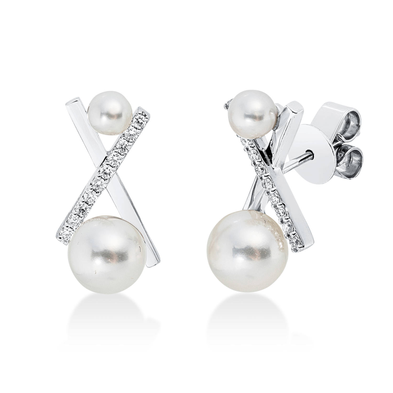 Ohrstecker 750 Weißgold 2 Süßwasser-Perlen 7mm 2 Süßwasser-Perlen 4mm 18x9mm