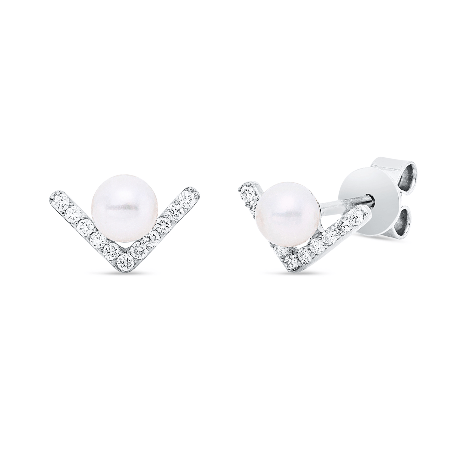 Ohrstecker aus 750 Weißgold 2 Süßwasser-Perlen 4,2mm weiß mit Brillanten