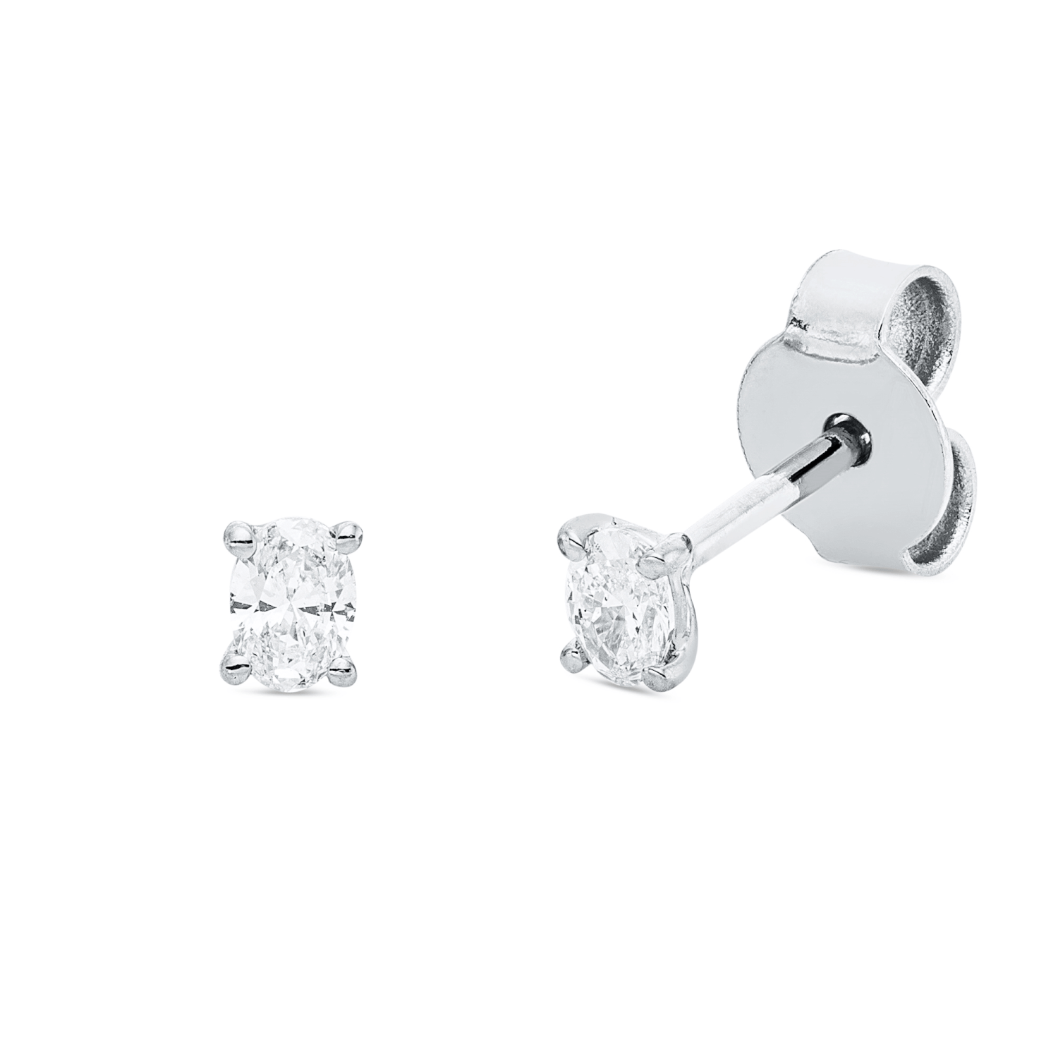 Solitaire Ohrstecker 750 Weißgold 2 Diamanten Oval-Schliff 0,18ct TW-SI 3,2x2,5mm
