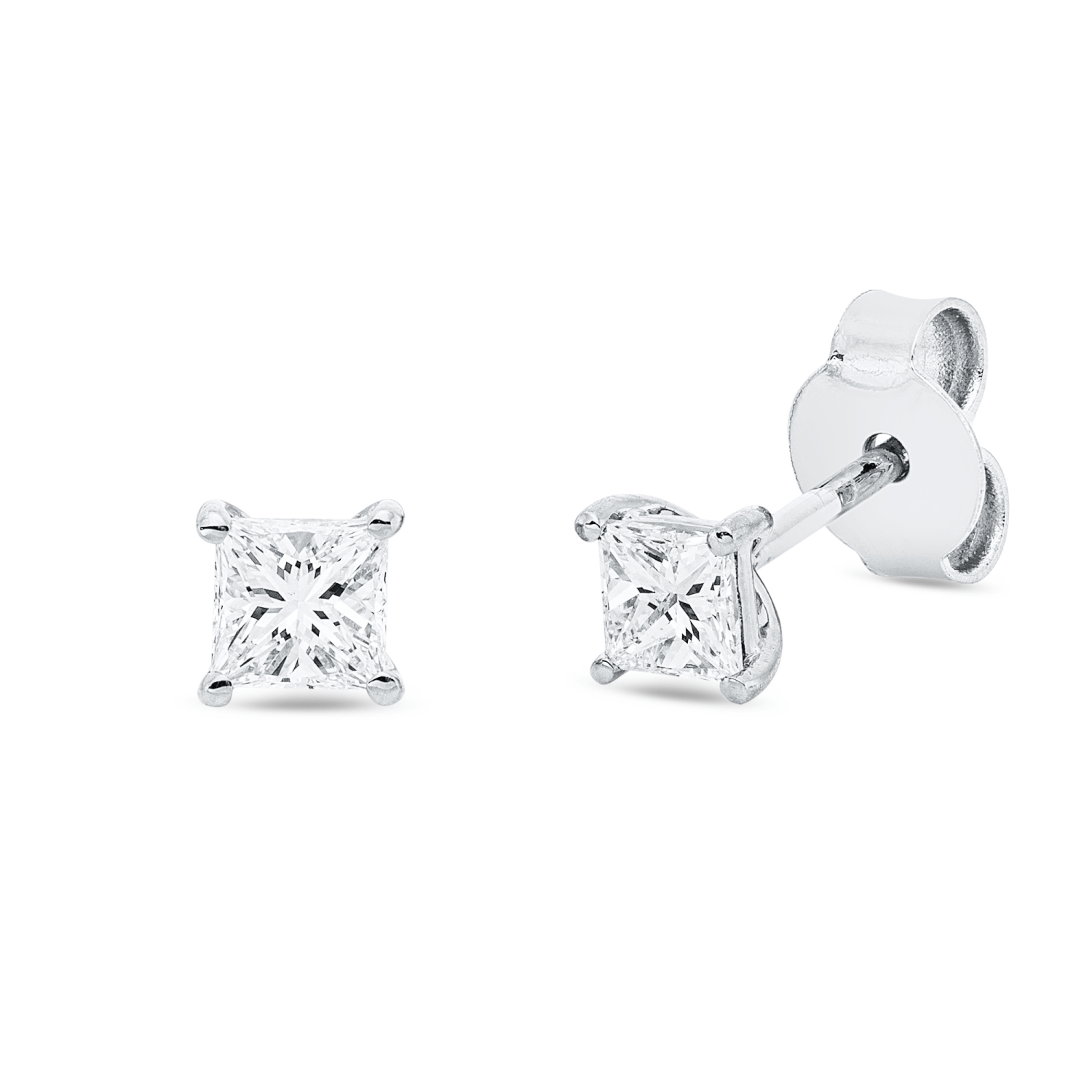 Solitaire Ohrstecker 750 Weißgold 2 Diamanten Prinzess-Schliff 0,47ct TW-SI 4x4mm
