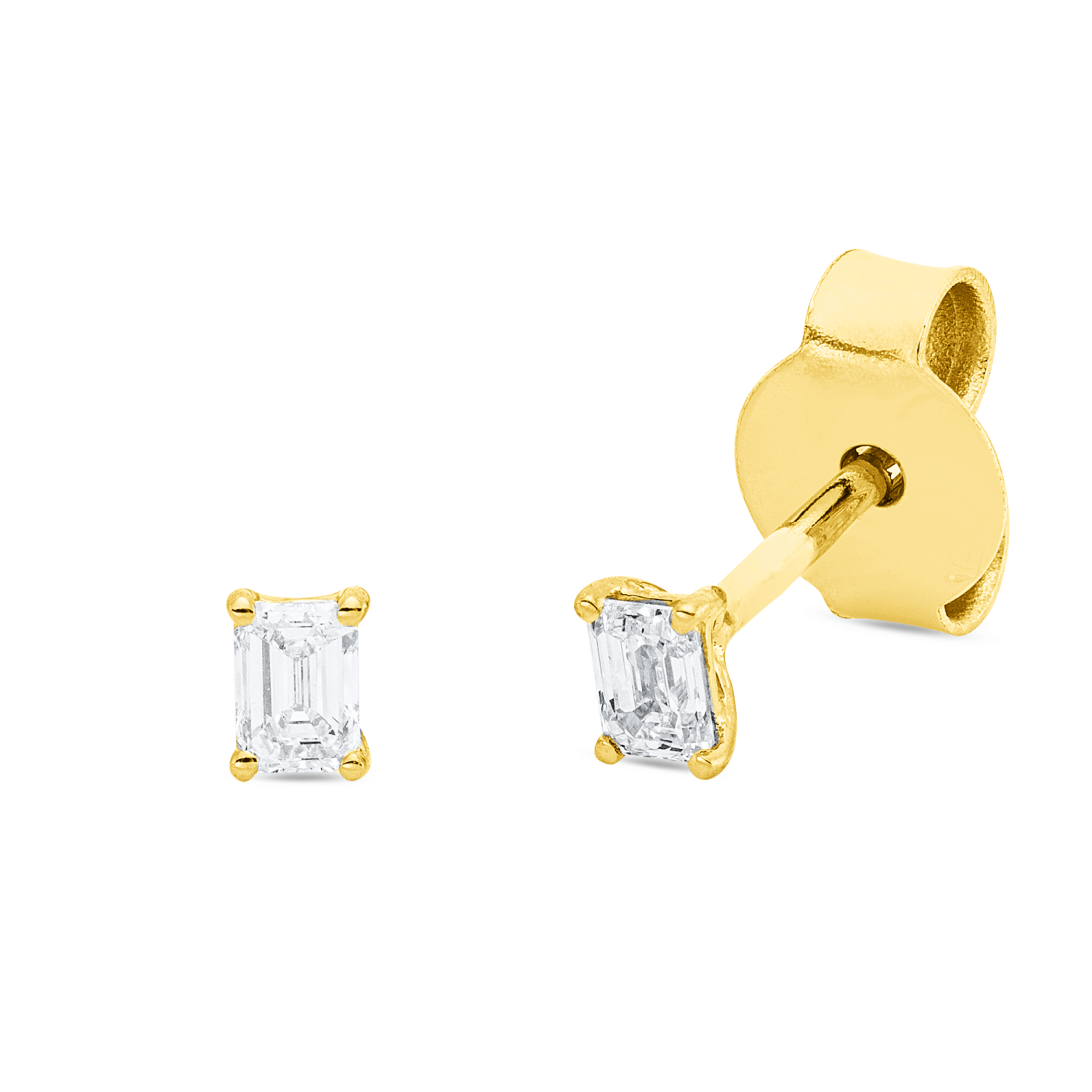 Solitaire Ohrstecker aus 750 Gelbgold 2 Diamanten Smaragd-Schliff 0,19ct TW-SI