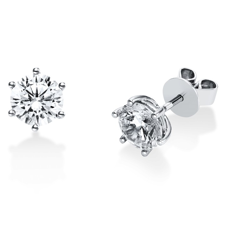 Solitaire Ohrstecker aus 750 Weißgold 2 Brillanten 2ct TW-SI Ø6,8mm 6er-Krappe