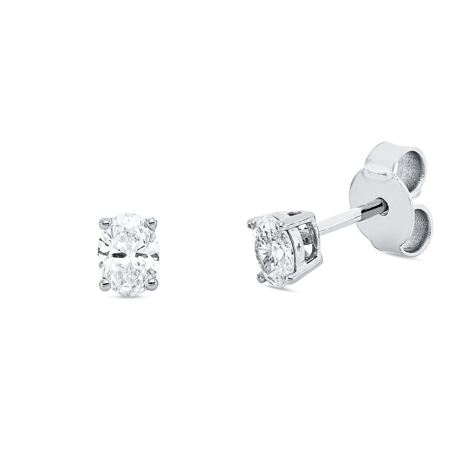 Solitaire Ohrstecker aus 750 Weißgold 2 Diamanten Oval-Schliff 0,38ct TW-SI