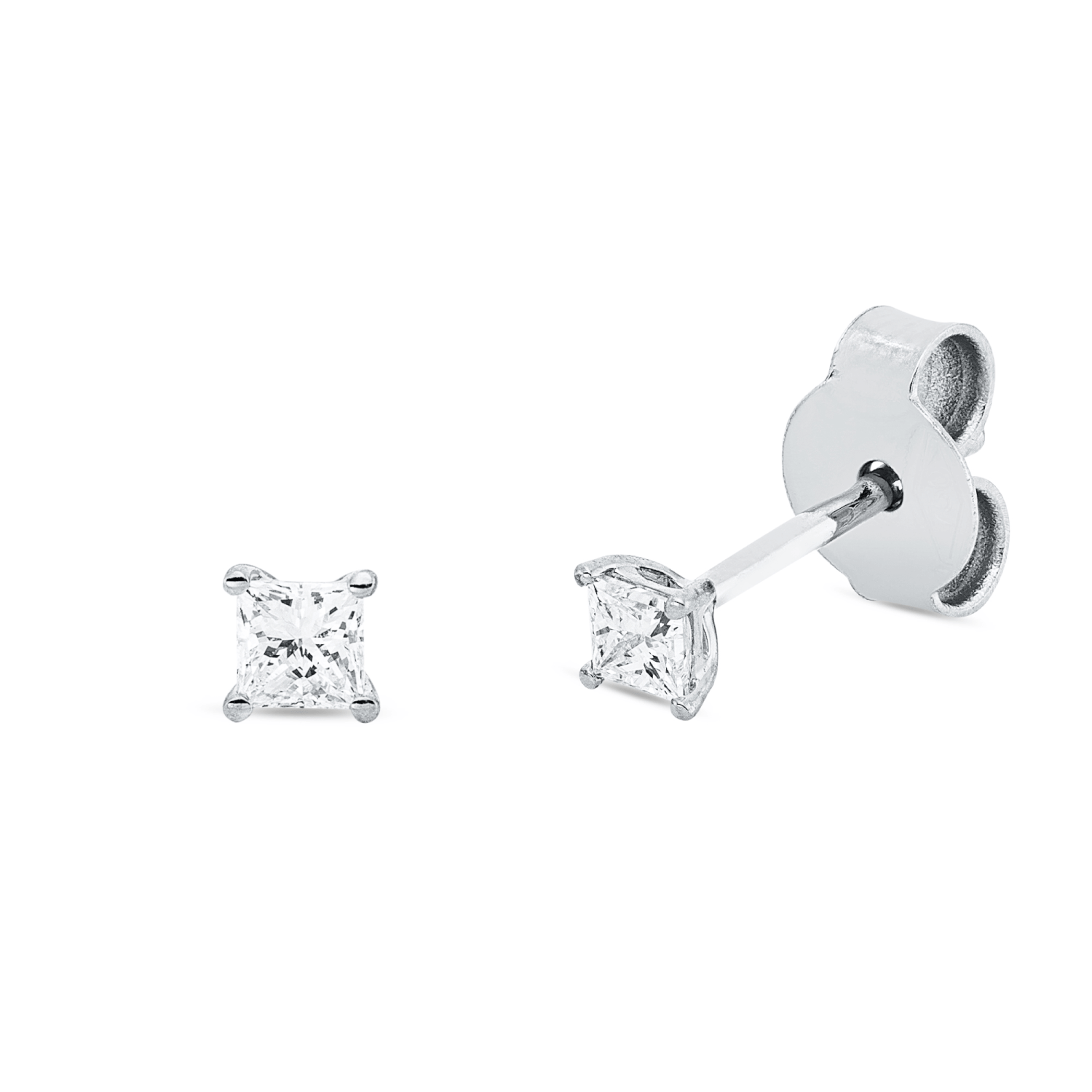 Solitaire Ohrstecker aus 750 Weißgold 2 Diamanten Prinzess-Schliff 0,2ct TW-SI