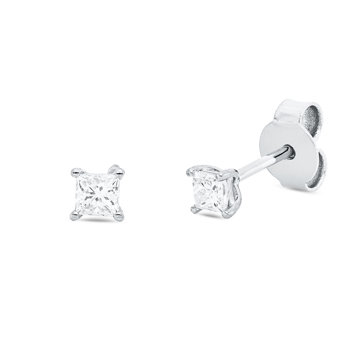 Solitaire Ohrstecker aus 750 Weißgold 2 Diamanten Prinzess-Schliff 0,31ct TW-SI