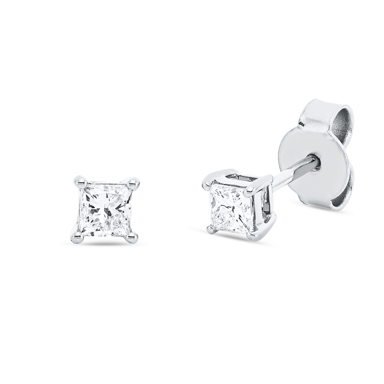 Solitaire Ohrstecker aus 750 Weißgold 2 Diamanten Prinzess-Schliff 0,37ct TW-SI