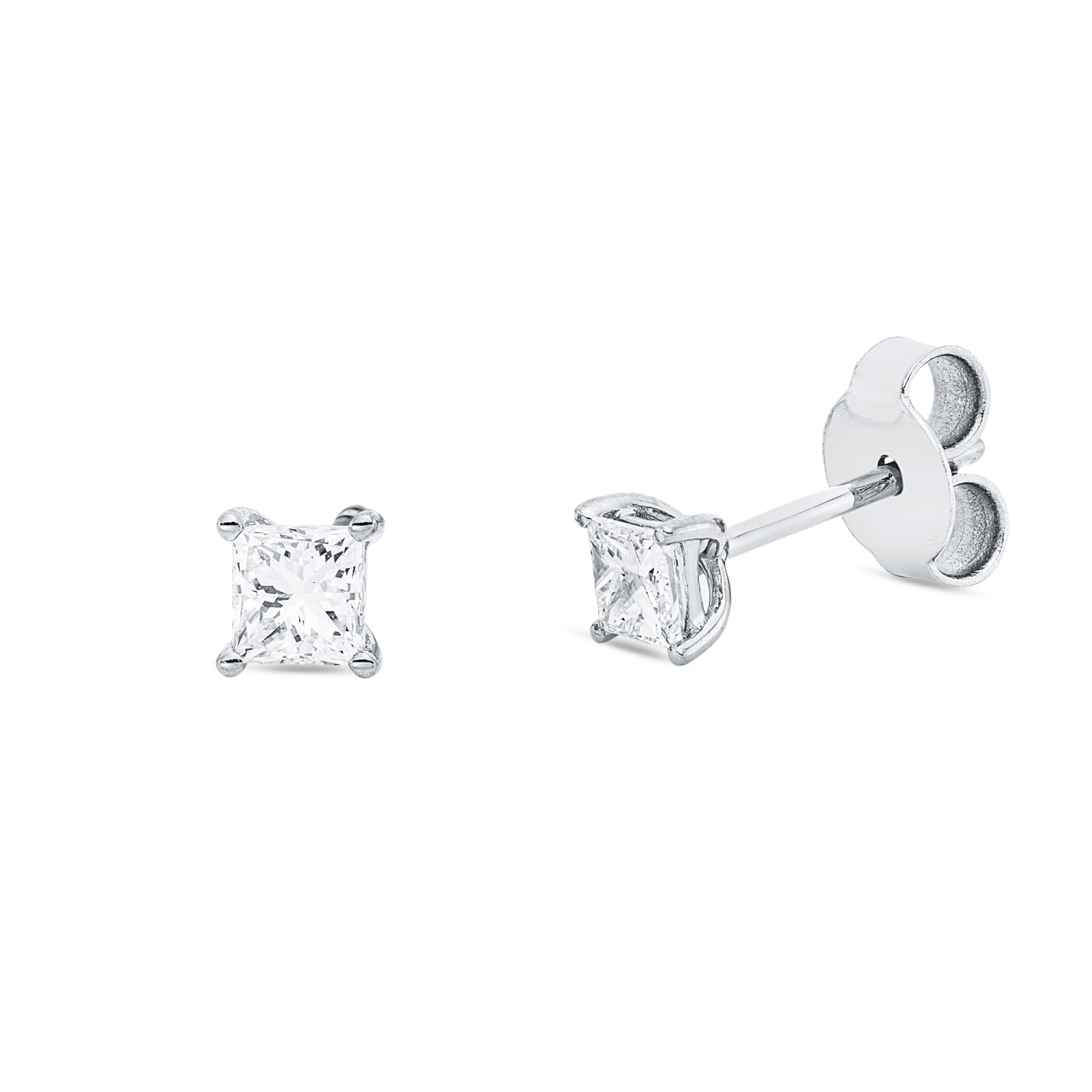 Solitaire Ohrstecker aus 750 Weißgold 2 Diamanten Prinzess-Schliff 0,4ct TW-SI