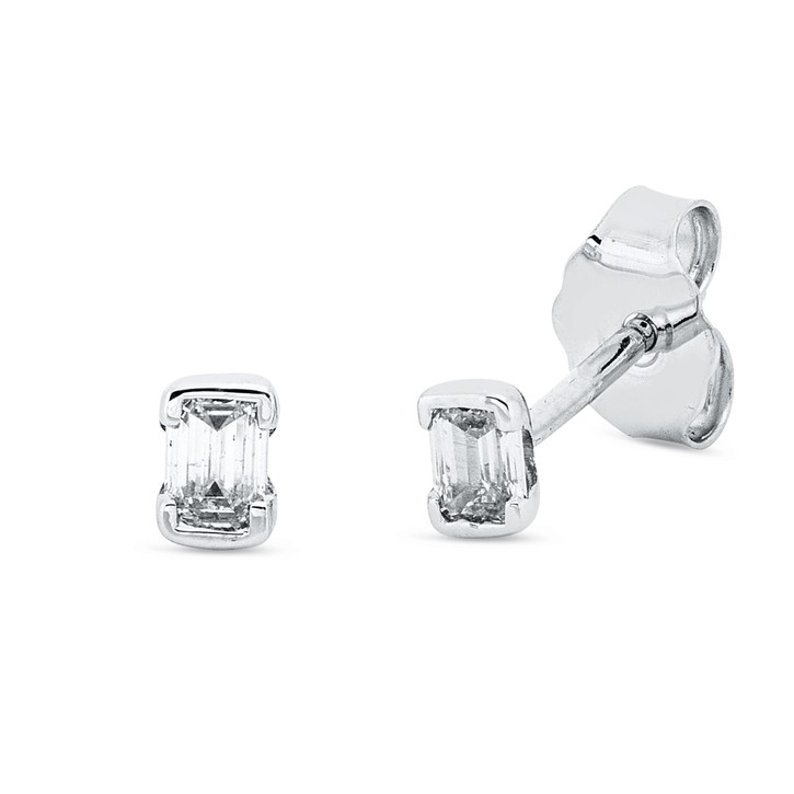 Solitaire Ohrstecker aus 750 Weißgold 2 Diamanten Smaragd-Schliff 0,22ct TW-SI