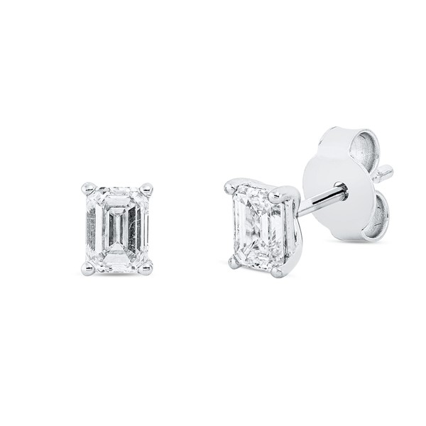 Solitaire Ohrstecker aus 750 Weißgold 2 Diamanten Smaragd-Schliff 0,82ct TW-VSI